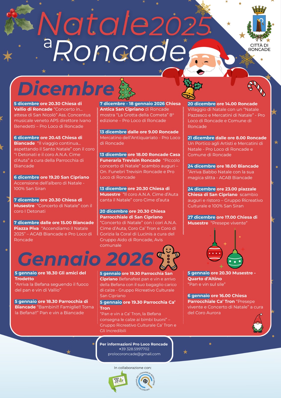 Alla Vigilia di Natale, Babbo Natale arriva a Biancade con la sua magica slitta.