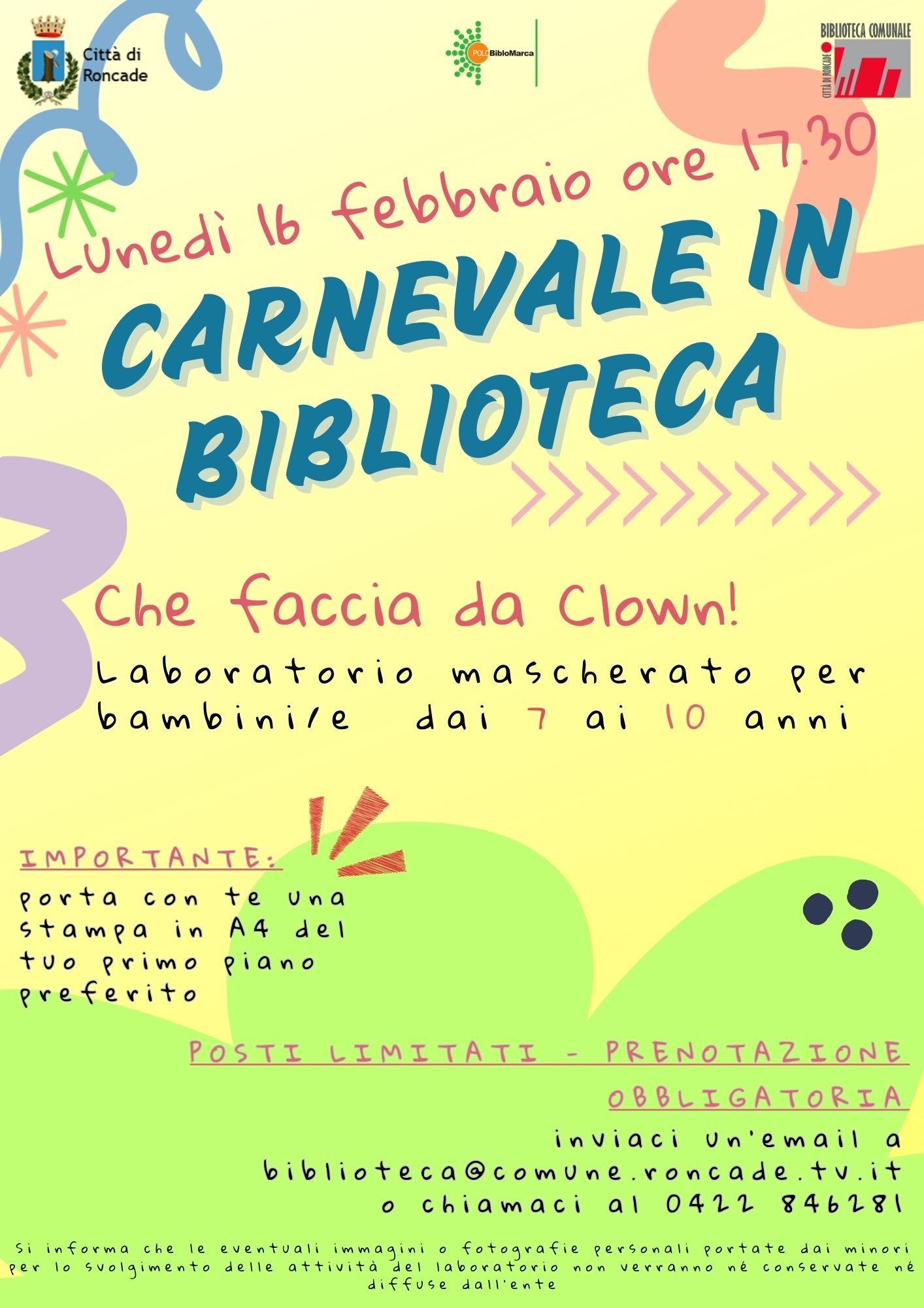La Biblioteca di Roncade propone un laboratorio di Carnevale dedicato ai più piccoli: “𝑪𝒉𝒆 𝑭𝒂𝒄𝒄𝒊𝒂 𝒅𝒂 𝑪𝒍𝒐𝒘𝒏!”